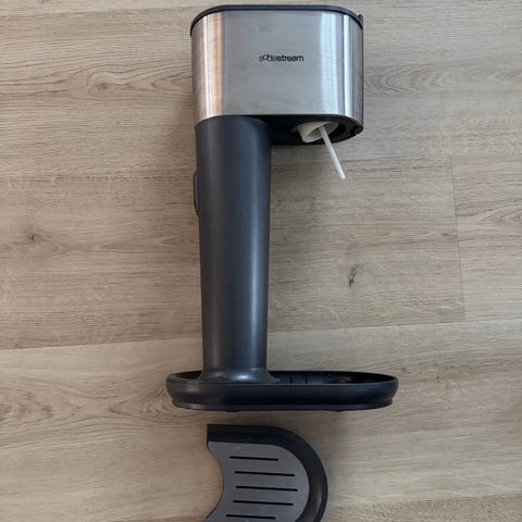 SodaStream Design brusmaskin i sølvfarge. En maskin for å lage kullsyreholdig vann hjemme, kommer med 1 flaske