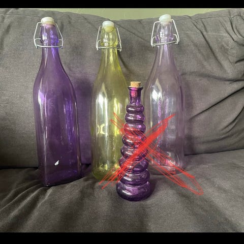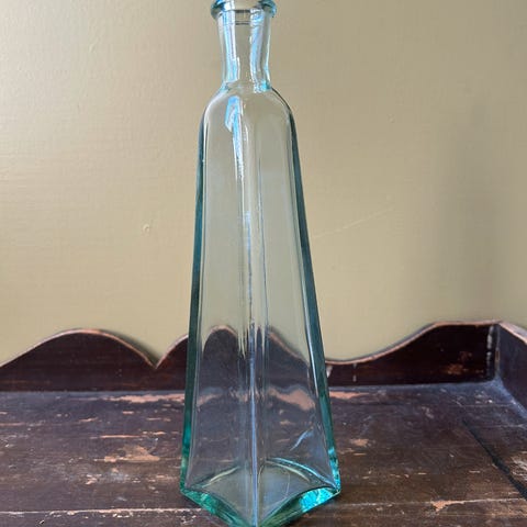 Blå glassflaske/vase. Høyde - 22 cm.