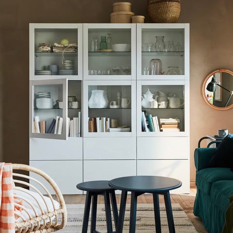 Sindvik vitrinedør til IKEA Bestå, hvitbeiset med klart glass.