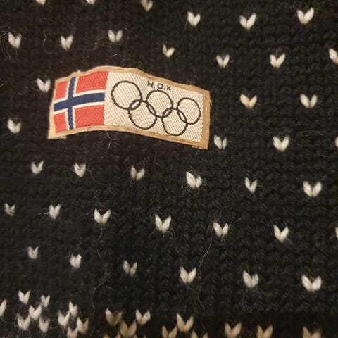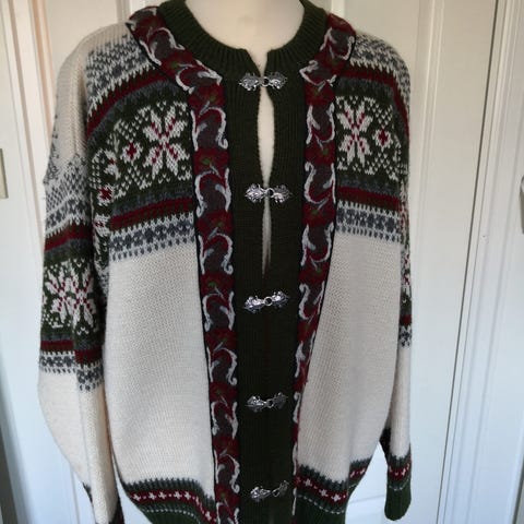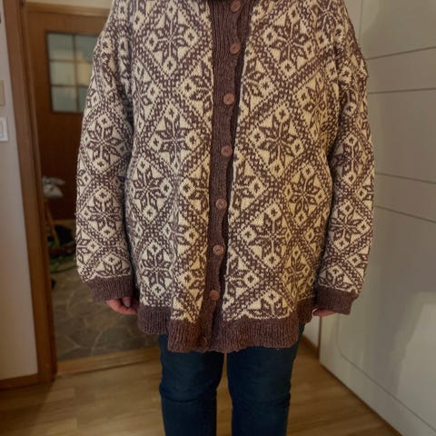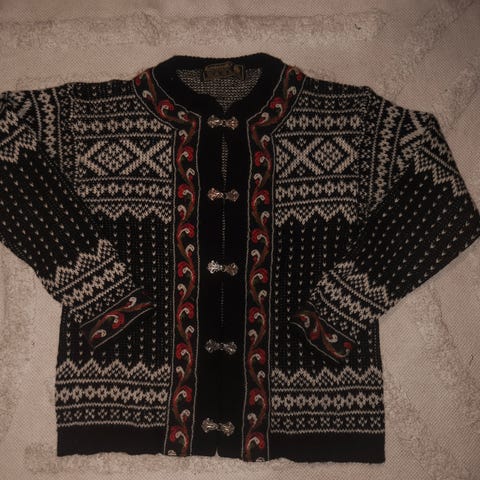 Kofte - Strikkejakke i ull. Merke Windfjord, STR XL Farge: Rød og sort. Klassisk norsk strikkejakke.