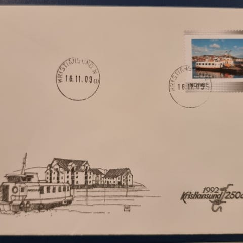 Norge, Konvolutt med frimerke, Kristiansund 250 år, 29.6.1992