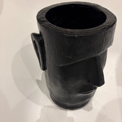 Selger en flott og iøynefallende vase med en moderne, organisk form. Den matte svarte overflaten og det skulpturelle designet gjør at den fungerer like godt som et kunstobjekt alene som en vase til blomster eller strå. Vasen har en høyde på 30 cm, noe som gjør den til et tydelig blikkfang på stuebordet, skjenken eller i vinduskarmen.
