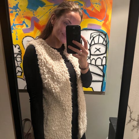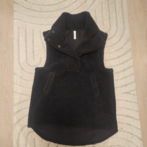 Stilren og komfortabel vest i grå farge med myk teddy-fôr på innsiden. Åpen modell uten lukking, perfekt som lag-på-lag til høst og vinter. Behagelig og lett å bruke både inne og ute.