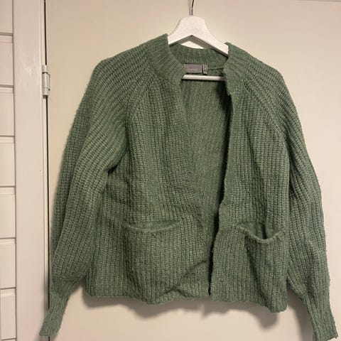 Fransa Cardigan i størrelse S for kvinner. Cardiganen er laget av bomull og har en rosa farge. Den har knappedetaljer på ermene.
