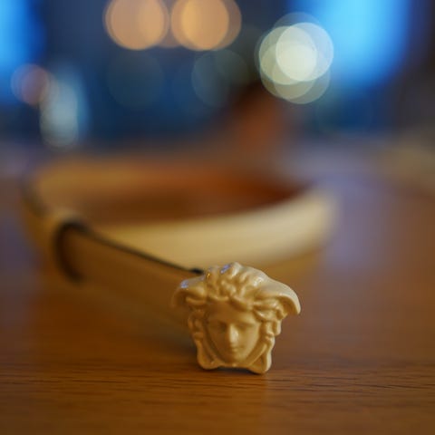 Dette beltet er laget i Italia av mykt skinn, og er utsmykket med en Medusa-spenne.