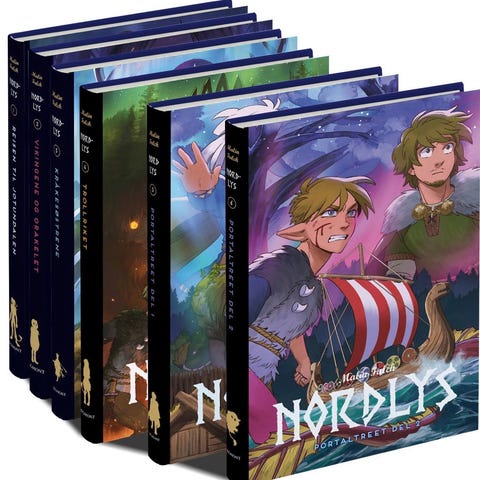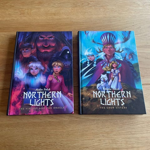 Malin Falch Nordlys tegneserier i to bind: Volum 2 'Vikinger og drager' og Volum 4'Trollriket'. Serien kombinerer elementer av eventyr og fantasy. Bøkene har fargerike illustrasjoner og følger en historie inspirert av norrøn mytologi.