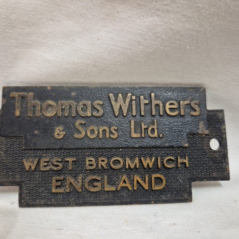 Skilt i messing med mål 9,5 x 6,5 cm.