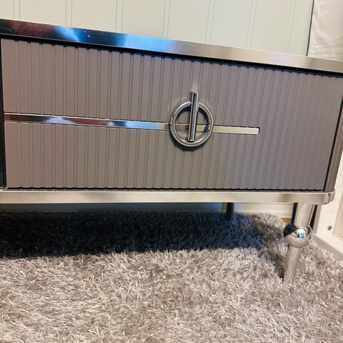 Selge en helt ny og uåpent sofabord. Produsert av meget høy kvalitet: Steinplate og sølv rustfritt stål ben.