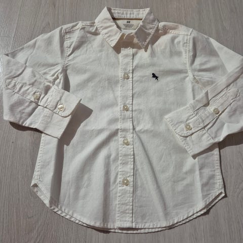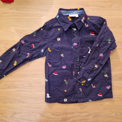 Fin skjorte til jul i str 98. Kjøpt ny av oss og er brukt to ganger. Ser ingen flekker, men kan ha oversett noe. Fra røyk og dyrefritt hjem.