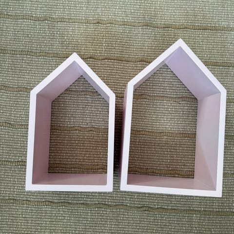 Fin hylle fra Alice & Fox. Vesla har plassert et klistremerke inni den største hyllen, ikke forsøkt å fjerne i tilfelle det skulle blitt merker.