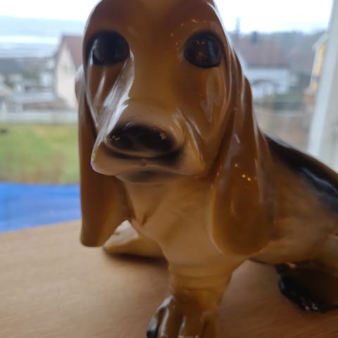 • 1 større dekorativ ramme i gull/elfenbensfarge med ornamenterte hjørner. Mål 34x28 cm
