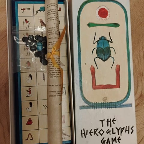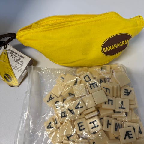 Zeppelin Spelling Game med bokstavkort og instruksjoner for bruk. Spillet inneholder kort med bokstaver i svart trykk på hvit bakgrunn.