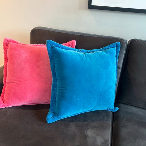 4, 2 stk myk sjøgrønn velour putetrekk med innerpute av dun kr 100 pr stk. Evt kr 180 for begge 2 med innerpute av dun