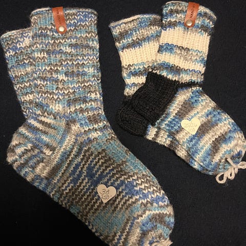 Håndstrikkede ullsokker med forsterket hæl. Str 38-39