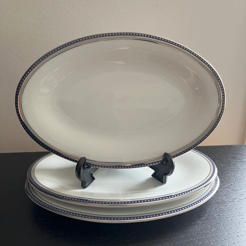 2 stk fat med stempel under - mål lengde 38 cm , bredde 26 ,5 cm, høyde 3,5 cm.