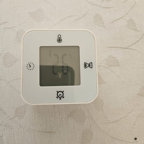 Klokke/termometer/alarm/timer, hvit, 7x7 cm