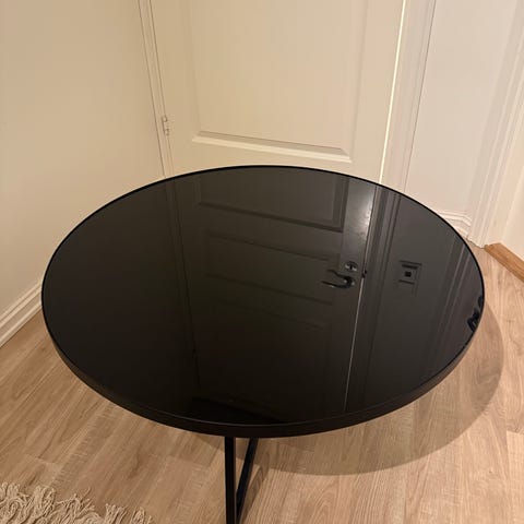 Svart rundt sofabord i metall, sett med to