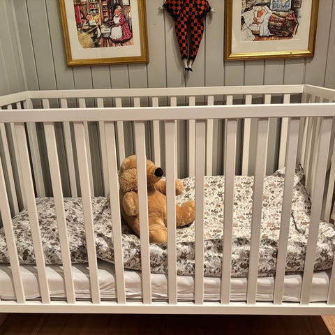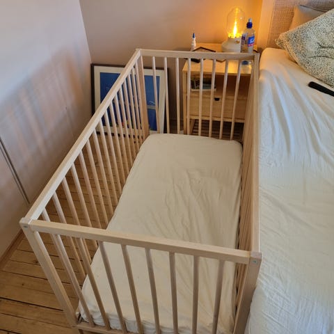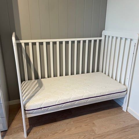 Sprinkelseng barneseng i hvit farge. Laget for barn, designet med sprinkelrammer for sikkerhet og komfort.
