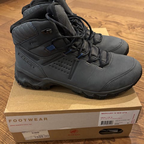 Har en par Mammut Blackfin iii mid dt str.47.5 som blitt kjøpt på Zalando, det blitt brukt 1x fordi den er en str. for liten for meg.