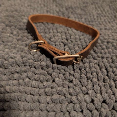 Det er noen tyggeskader på plastikk låsen men den fungerer som den skal. Den ene stangen er også litt bøyd men påvirker ikke funksjonen. Mulig man kan «bøye» den tilbake. (Se bilder).