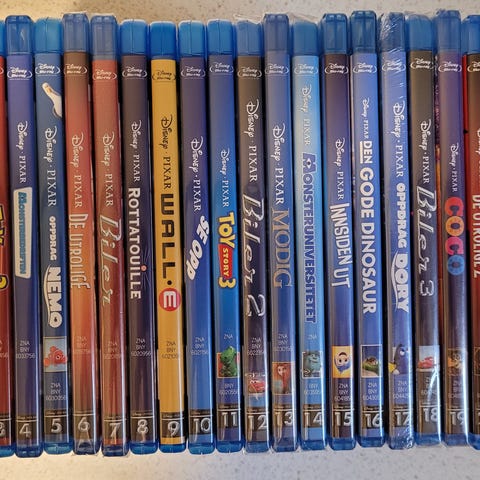 800 krKomplett samling, Disney Pixar Blu-ray filmer, 20 stk., selges samlet.NotoddenLegg til som favoritt.