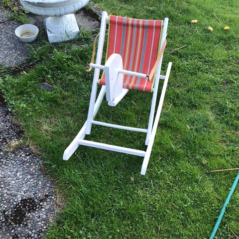 Har noen flekker på stoffet. Kan vaskes i maskin.Poang lenestol ti