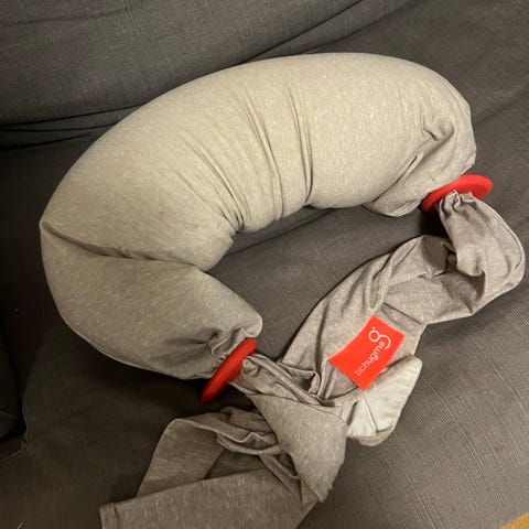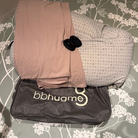 Bbhugme gravidpute med to trekk og silikonringer (brukes til å justere fastheten på puten). Godt brukt, men bærer ikke preg av det. Mase bruk igjen. Hentes på Sagene :)