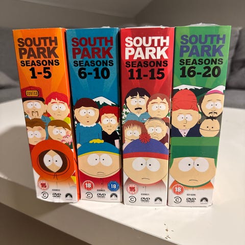 Selger South Park sesong 6, 11 og 13. alle diskene fungerer og alle episodene har norsk tekst.