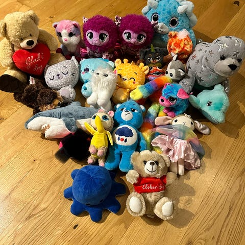 Lucy leke hund og Furby koala bamse.