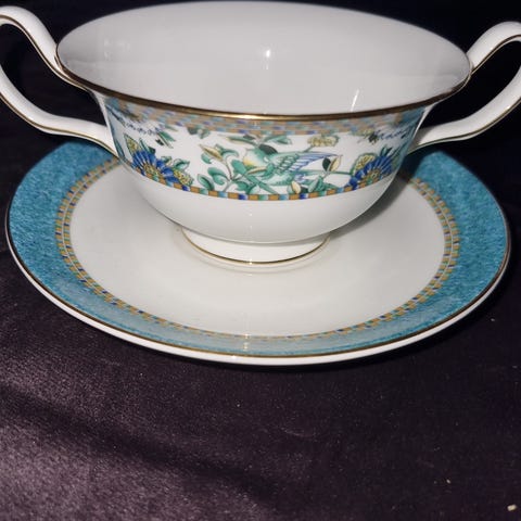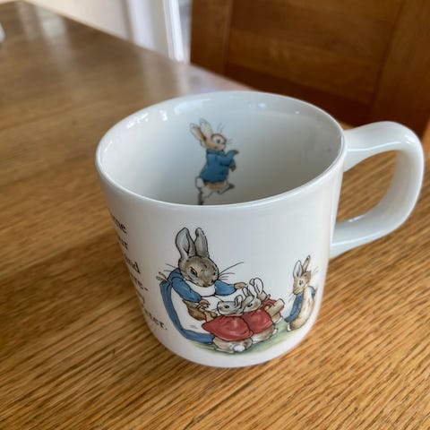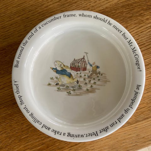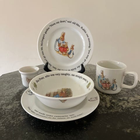 Koselig servise i keramikk fra Wedgwood med Peter Rabbit motiver.