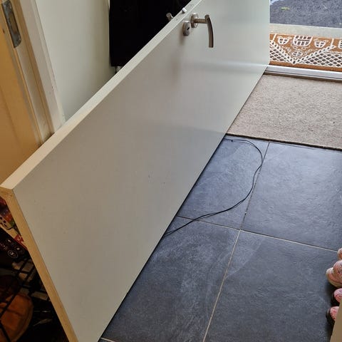 Hvitt innerdør med tre paneler. Døren er laget av tre og har en enkel, klassisk design som passer til ulike interiørstiler.