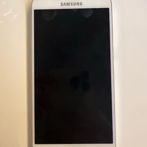 Skjermen er knust. Blinker såvidt ved oppstart/tilkobling til lader, men blir så svart.