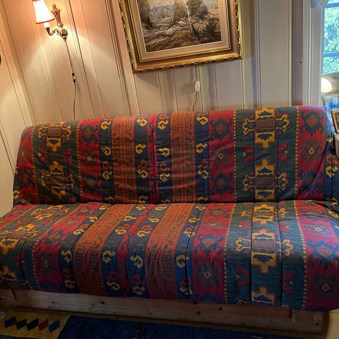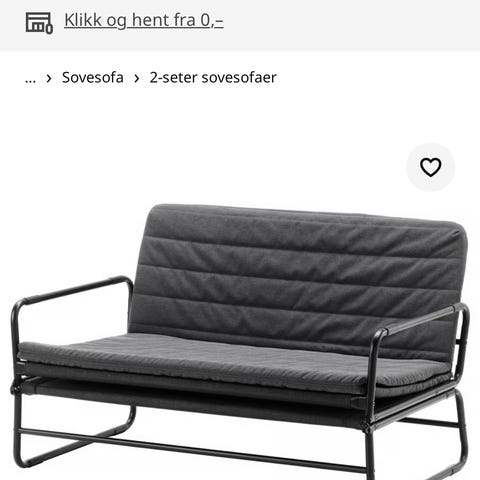 Sovesofa fra Ikea. Nyvasket, avtagbart trekk. Ikke slitt. Hjul i bakkant. Armlenene klappes ned for økt sengelengde.: totalt 235 cm. Pute med samme stoff følger med. Ekstra trekk for sittedel og armlener, mørkt grå følger også nyvasket med. Tre ørsmå prikker gikk ikke bort i vask, men knapt synlige. Se bilde.