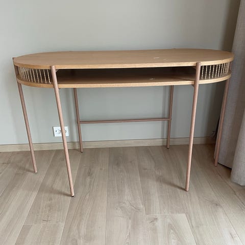 Flott pult i eik, flere små skuffer. Sjalusidøre.
