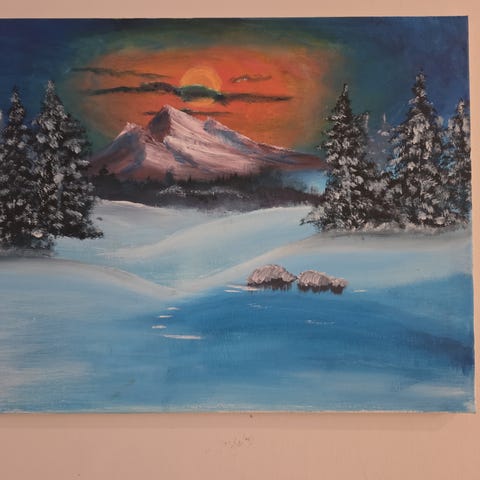 Norsk maleri fra 1950-tallet. Bildet fremhever norsk natur. Utrolig flott!