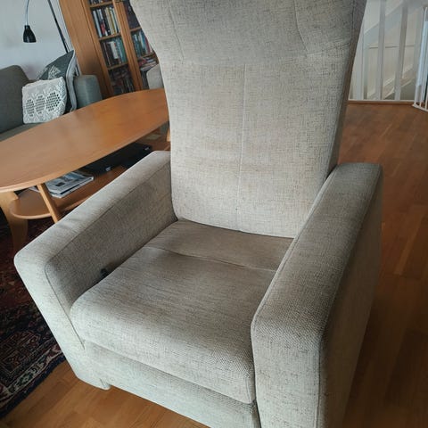 Pent brukt. Brunt mikrofiberstoff. Med løs hode/nakkepute.