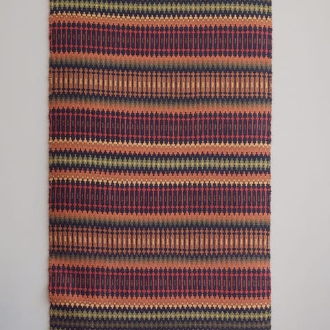Teppet er fra 80 tallet. Håndvevd med 100 % naturfaget ullgarn. Teppet er tykt og tungt.