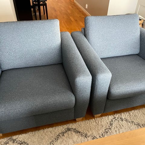 Myke og behagelige lenestoler selges. Stolene er veldig behagelige og praktiske med vaskbar trekk.