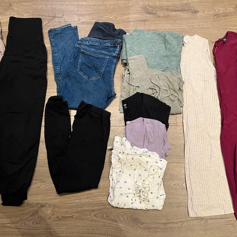 Liten klespakke med pent brukte klær til gravid kropp.