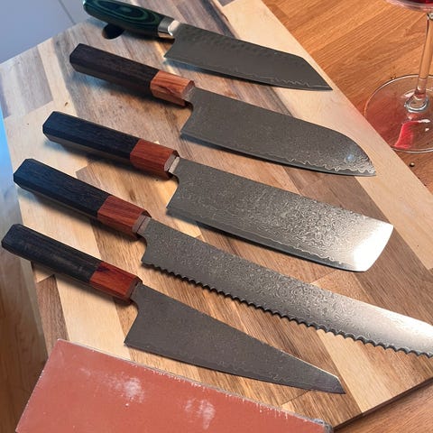 Denne unike kniven, som dessverre ikke lages mer Sultan er en serie ekstraordinære orientalske kjøkkenkniver. Allsidigheten til disse knivene har plassert dem ikke bare i hendene på kokker, men også hos overlevelsesentusiaster. Den distinkte bøyde tuppen gir en enkel kuttekapasitet, noe som gjør at den dekker en rekke bruksområder. Kniven er perfekt balansert med et komfortabelt, buet håndtak. Kniven er laget av det fineste Damaskus-stål, 67 lag og med et forsterket G-10-håndtak. Finnes rød perfekt julegave til en gourmet.