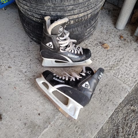 Ranger ishockeyskøyter i størrelse 42. Skøytene er designet for ishockey og har svart farge med hvite lisser og såle. Egnet for bruk på is for ishockeyspill.
