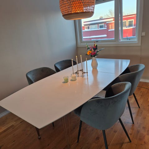 Blå fløyelsstoler fra Søstrene Grene