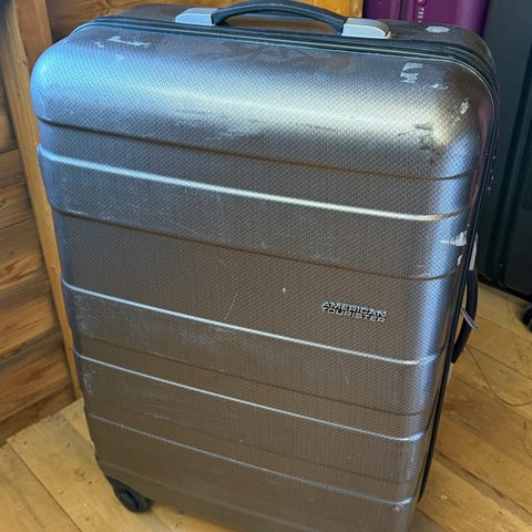 Meget solid hardt koffert, merker American Turister, størrelse Large på 75x58x24. Lås fra begge siden fungerer. Digital lås med 3 siffer slutter å virker i år. Hvis noen vet hvordan fiser lås er koffert helt fint. Har brukt i år koffert med side lås pluss belt på koffert og det gikk fint.