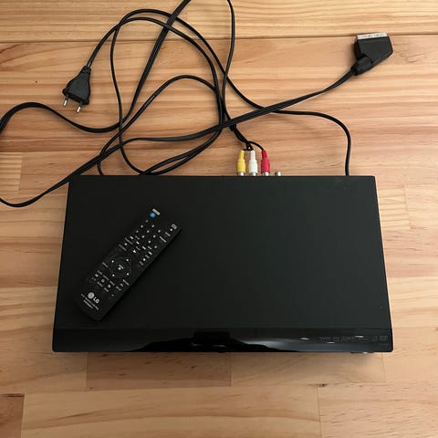 LG DVD-spiller uten fjernkontroll. Enheten har flere tilkoblingsmuligheter inkludert HDMI, komponent, kompositt og SCART. Den er designet for avspilling av DVD-plater. USB tilkobling.