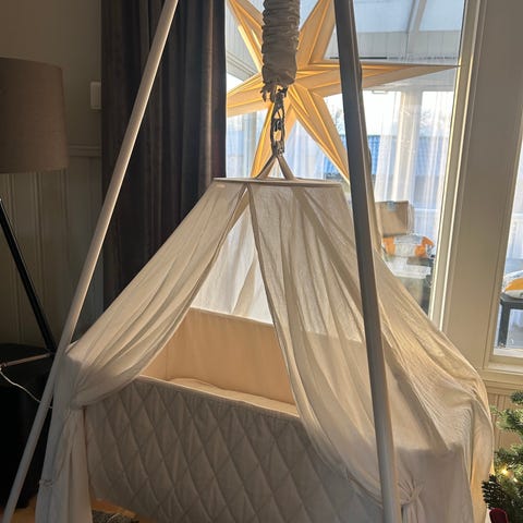 Følger med en Heaven sengehimmel som gir en lun atmosfære og som man kan lukke helt hvis ønskelig.