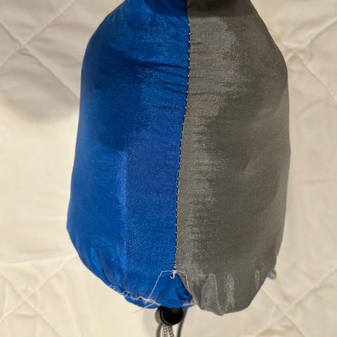 Myggnetting er fastmontert på hengekøyen og er romslig med oppheng.