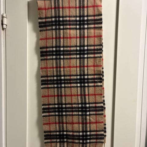 Lys brunt 125 (med frynser 134 cm) x 22,5 cm frå Alexanders, Skottland 100 % ull. Kr 125,-