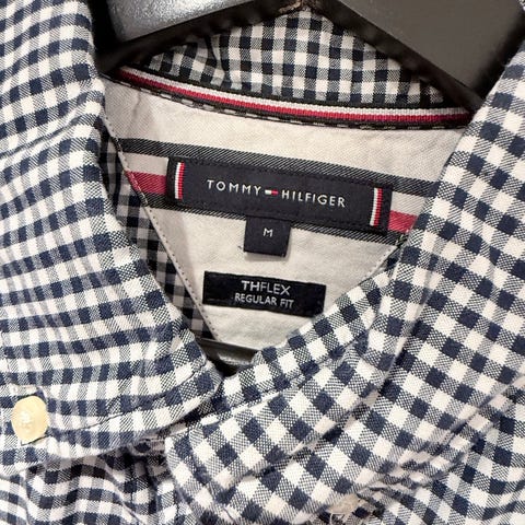 Tommy Hilfiger skjorte i blå/gul rutete farge, størrelse M. Laget av flanellmateriale, designet for menn.