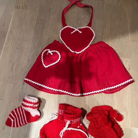 Rød fin vintage jumpsuit & anti skli sokker i julefarger