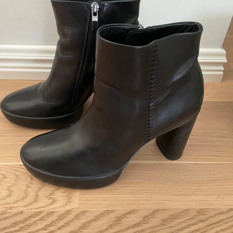 Omtrent ubrukt - se bilder. Ingen slitasje på hæl. Kun et lite merke bak på den ene - se bildet - men skoene fremstår som nye.